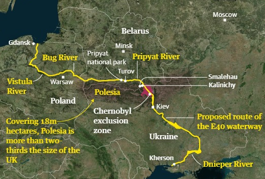 Der E40-Wasserweg möchte den Frachtverkehr per Schiff zwischen Ostsee und dem schwarzen Meer wieder reaktivieren. Um heutigen Transportschiffen eine angemessene Wasserstraße zu bieten sind umfangreiche Ausbaggerungen, wie auch mehrere Dammkonstruktionen, besonders im Bereich des im Grenzgebiet zwischen Belarus und der Ukraine wild fließenden Pripyats notwendig. Die ersten Baggerarbeiten in der verstrahlten Evakuierungszone von Tschernobyl begannen im August 2020, entgegen nationalem wie internationalem Recht. Obwohl der Pripyat eines der größten wilden europäischen Sumpfgebiete bewässert, wurde noch nicht einmal eine Umweltverträglichkeitsprüfung durchgeführt. Dass eine umfassende und transparente Aufklärung der Bevölkerung nicht stattfand, verwundert da schon fast nicht mehr...