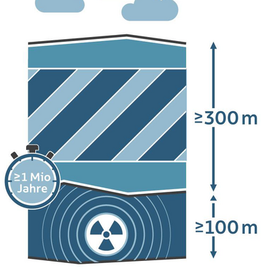 Die Mindestanforderungen an alle Gesteine sind mind. 300 m tief, mind 100 m mächtig und 10-20 qkm Fläche, weiter berücksichtigt werden z.B. geowissenschaftliche Abwägungskriterien wie z.B Temperaturverträglichkeit, Absorption, ohne spröd zu werden, Gasbildung Ausschluss: keine alten Bergwerke, keine aktiven Störungszonen, kein Vulkanismus, Aufstiegsrate mit weniger als 1 mm pro Jahr Wichtige Behörde: Bundesamt für kerntechnische Entsorgungssicherheit – BfE (www.bfe.bund.de)