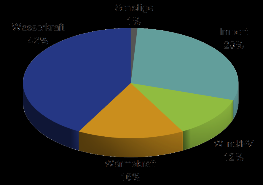 Im Jahr 2017 wurden in Österreich 100.185 GWh Strom verbraucht. Fast die Hälfte davon stammt aus Wasserkraft, aber etwa ein Drittel (29 %) wird aus dem Ausland importiert. 15,7 % des österreichischen Stroms kommt aus der Verbrennung fossiler Energieträger.